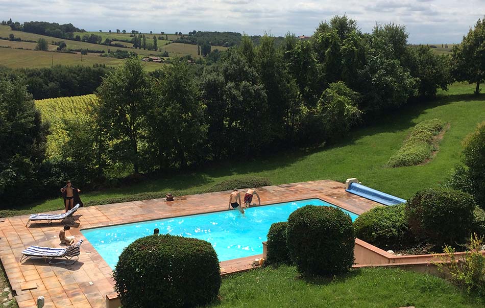 Située en contrebas de la maison, ensoleillée tout au long de la journée, la piscine (10x5m), entourée de verdure, est comme plantée au milieu du paysage. On y est au calme, dans un environnement champêtre mais ouvert sur un large paysage avec une vue imprenable sur la maison.